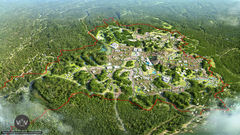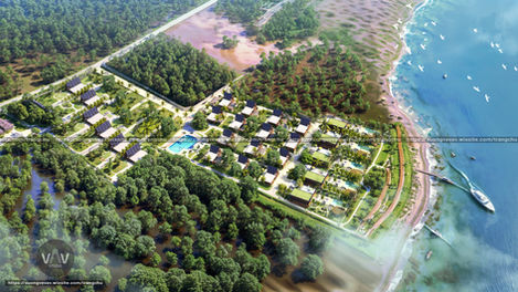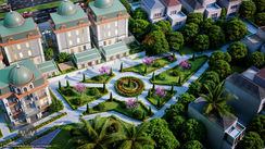 Thiết kế phối cảnh 3D tổng thể dự án, bao gồm các tiện ích, cảnh quan xung quanh.
